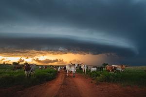 A herd of curious long horn cattle watch over me as I capture a sunset supercell in Western Oklahoma